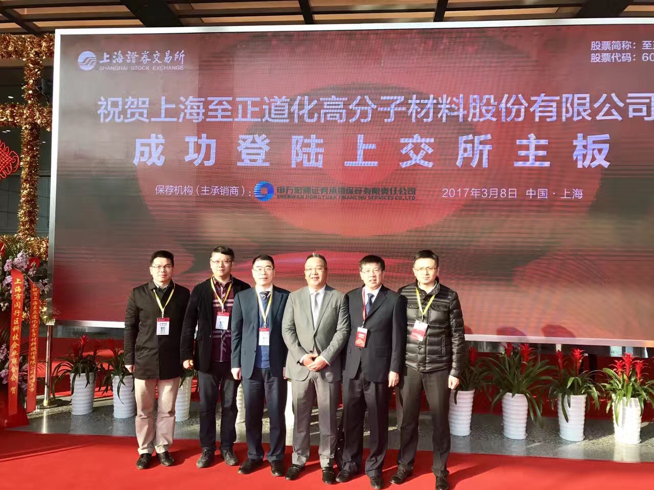3月8日,浙江省塑料行业协会会长、浙江明日控股集团股份有限公司董事长韩新伟应邀参加上海至正道化高分子材料股份有限公司在上海证券交易所主板上市仪式。