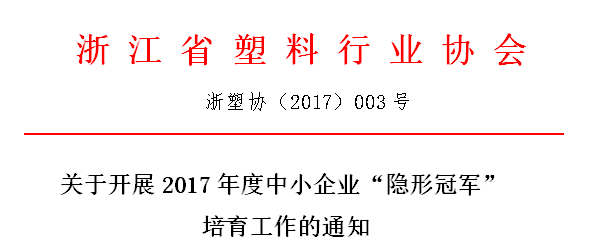 为贯彻落实《浙江省人民政府办公厅关于推进中小微企业“专精特新”发展的实施意见》(浙政办发〔2017〕15号),根据《浙江省经济和信息化委员会关于培育隐形冠军,促进中小企业“专精特新”发展的通知》(浙经信企创〔2016〕234号),浙江省经济和信息化委员会将启动2017年度中小企业“隐形冠军”培育工作。有关事项通知如下:
