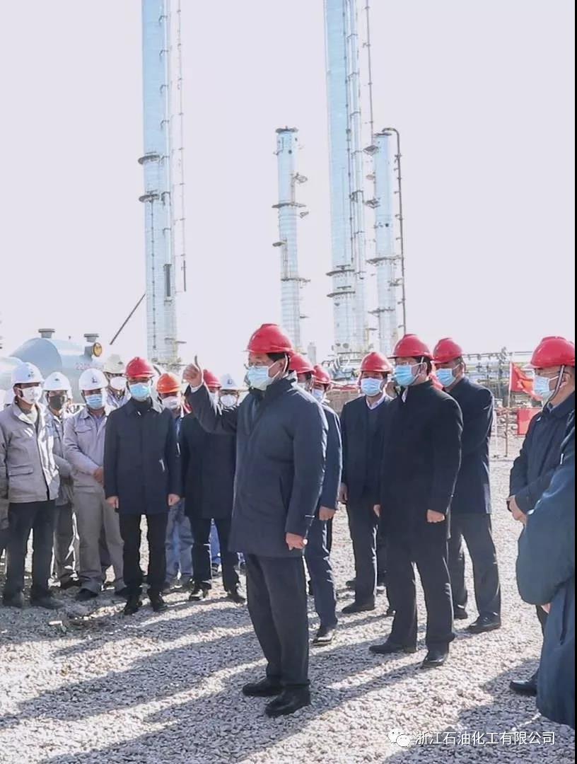 2月18日,浙江省委书记车俊登上鱼山岛,检查舟山绿色石化基地浙石化项目疫情防控和生产建设情况,并慰问岛上员工。