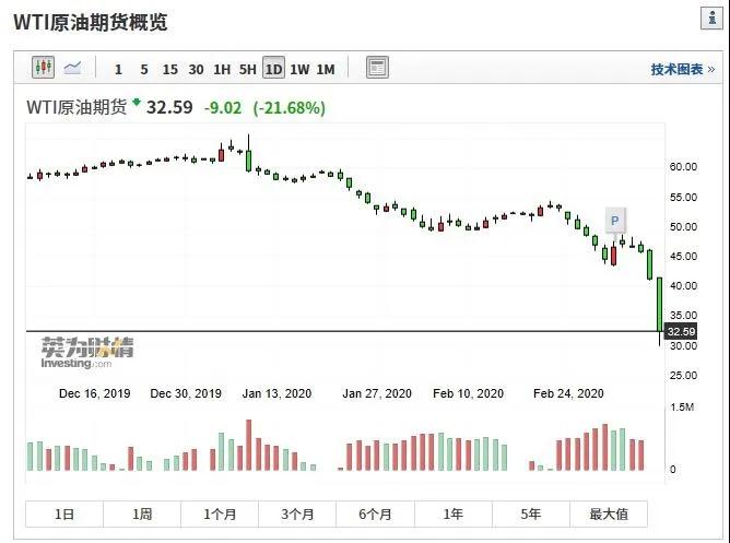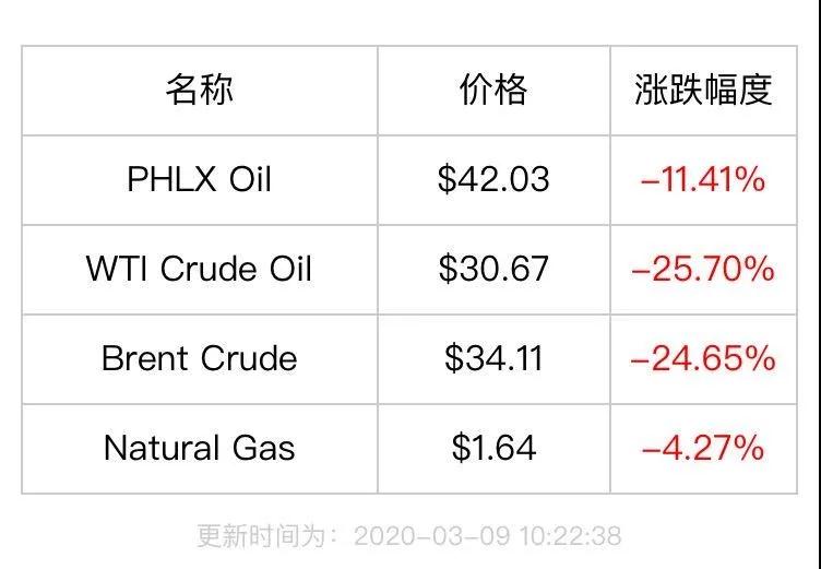 3月9日亚市早盘,全球金融市场再次大幅波动。国际油价出现雪崩,布伦特原油期货一度跌超30%,日内最低价触及31.38美元/桶,WTI原油期货一度触及30美元/桶整数位心理关口,跌近30%,创2015年2月19日以来新低。据财联社最新消息,WTI油价已经跌破每桶28美元。