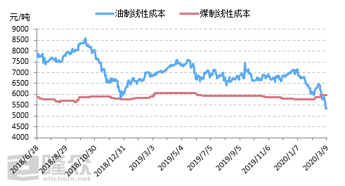 图3油制与煤制线性成本对比图