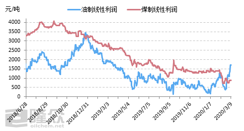 图4油制与煤制线性利润对比图