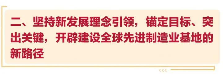 建设全球先进制造业基地,关键要把握“全球先进”这个关键词。主要体现在市场主体充满活力、发展环境国际一流,体现在引领数字化变革、领跑制造方式转型,体现在开放共赢、内外联动,体现在以创新为根本、绿色为底色,体现在高端化、高市场占有率、高附加值、高韧性。主要目标是:2020年,推动制造业高质量发展成为高水平全面建成小康社会的显著特征;到2025年,推动全球先进制造业基地建设取得重要进展,建成国内领先、有国际影响力的制造强省;到2035年,高水平建设具有国际竞争力的数字经济、生命健康、新材料创新高地,基本建成全球先进制造业基地。