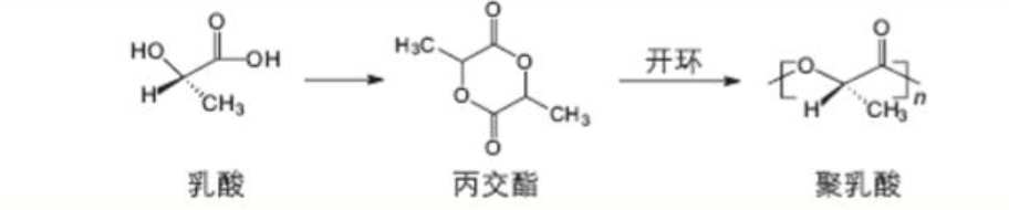 两步法:乳酸生成丙交酯,再开环聚合制得聚乳酸。该方法可以得到分子量和微观结构均可调的聚乳酸,但丙交酯开环聚合法要经过丙交酯纯化的步骤,生产流程长,成本较高。目前聚乳酸的生产主要采用丙交酯开环聚合工艺。