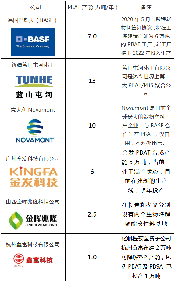 全球PBAT产能最大的公司为BASF,目前产能为7.4万吨/年。我国PBAT材料产业化发展速度快,行业内企业集中度高。