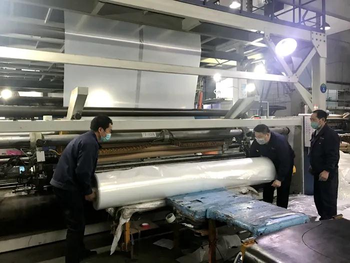 眼下,新光公司正开足马力忙生产,争分夺秒提产能。车间里,机器快速运转着、工人熟练地操作着,卷膜源源不断地从机器吐出,繁忙的开工“音符”奏响了动听的春日“复工曲”。