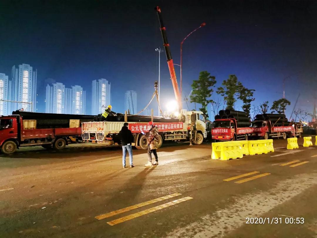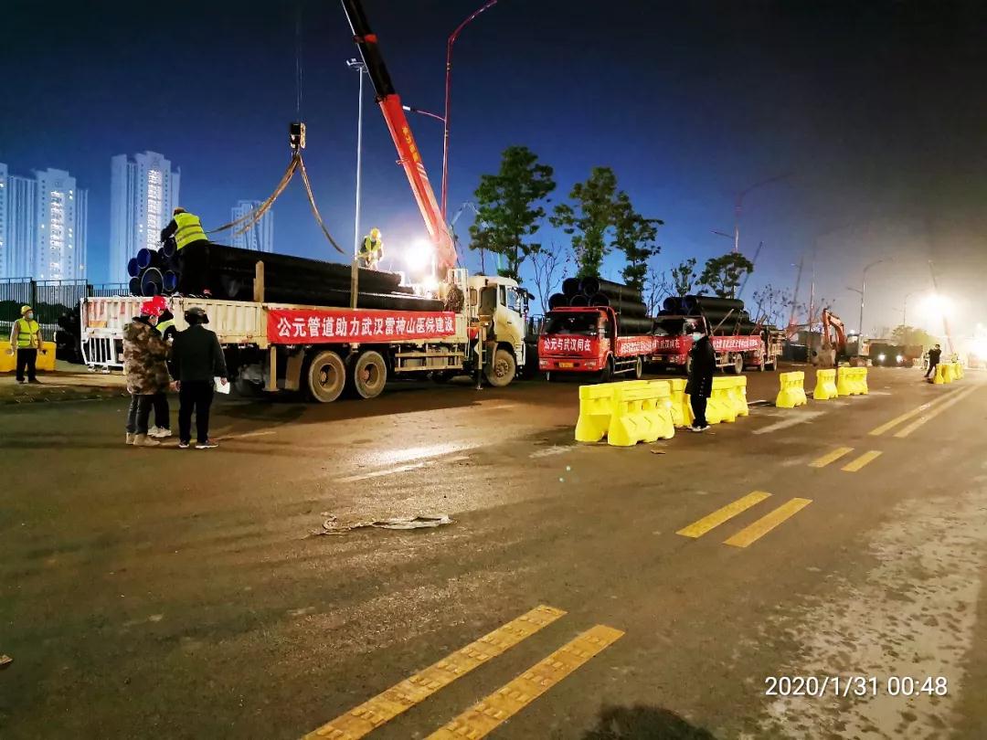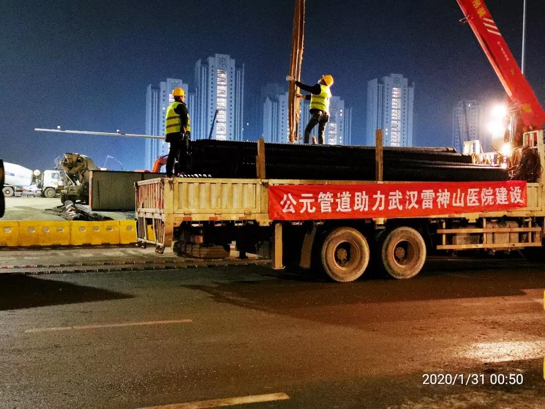 31日凌晨,武汉的室外温度零下2℃,但凛凛寒风也阻挡不住公元人前行的步伐。前晚,从武汉雷神山医院建设方了解到,施工现场急需一批管道,等待施工安装。公元集团·永高股份第一时间再次集结力量,协调沟通、安排配送。