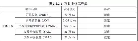 公示信息显示,该项目拟建于连云港石化产业基地江苏斯尔邦石化有限公司预留地内,占地面积约为59.12公顷,包括1套70万吨/年丙烷脱氢(PDH)装置、2套26万吨/年丙烯腈(AN)装置、2套9万吨/年甲基丙烯酸甲酯(MMA)装置及1套21万吨/年废酸再生(SAR)装置及其他配套工程。项目总投资 1066973 万元,其中环保投资109940 万元。本项目涉及的厂外物料运输管道不在本次评价范围内。