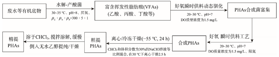 图 2 好氧瞬时供料工艺合成及提取 PHAs 的流程