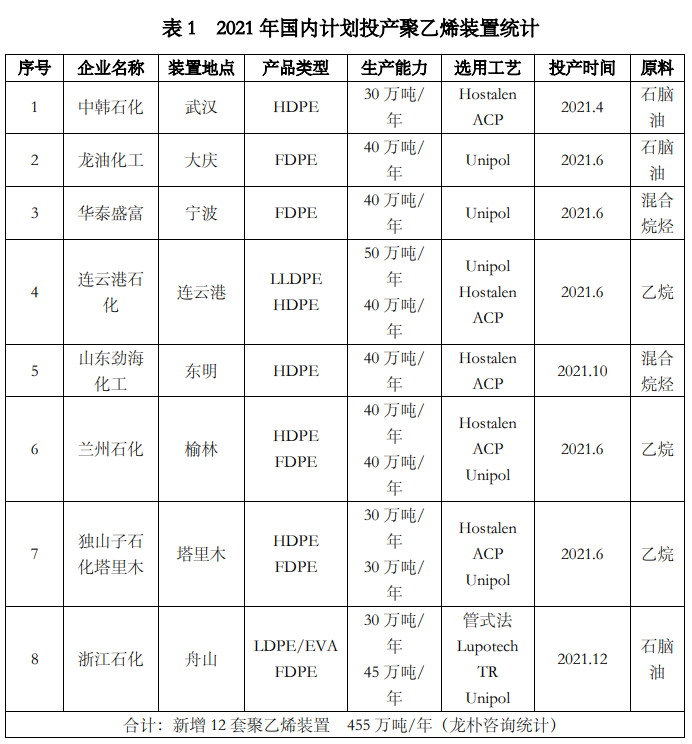 2021年,国内计划投产29套聚烯烃装置,有哪些新秀呢?