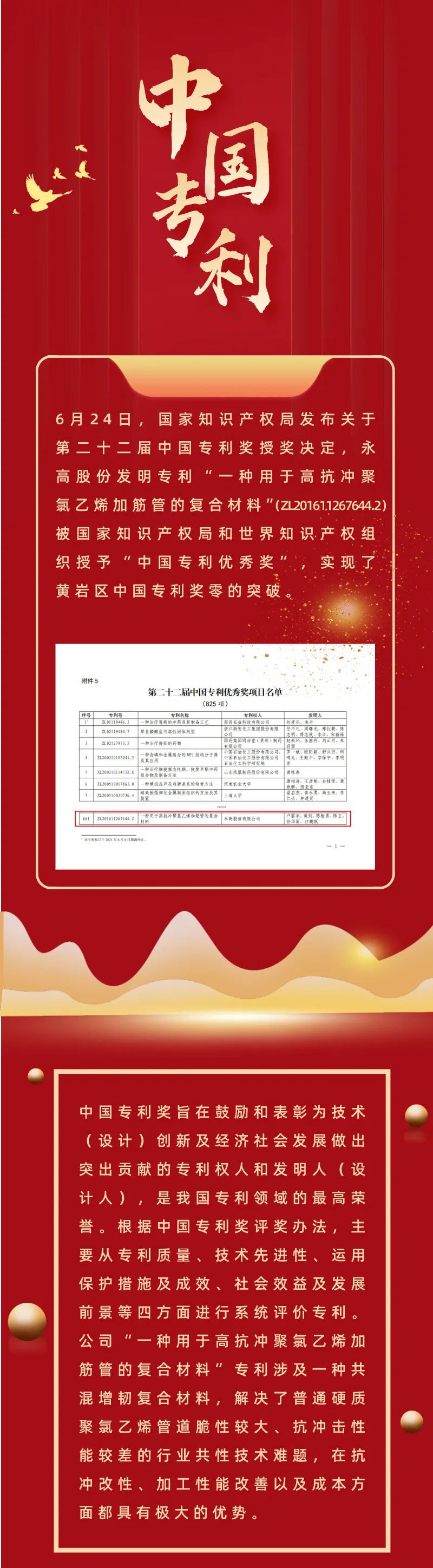 突破!永高获中国专利优秀奖