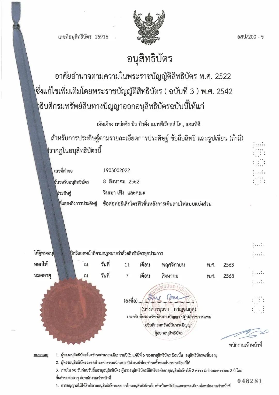 近日,伟星新材自主研发的“一种分段式后布线电熔管件”通过泰国专利授权,获得泰国知识产权部颁发的实用新型专利证书。该专利作为伟星新材第一件国际专利,对泰国市场的开拓有着重要的意义。