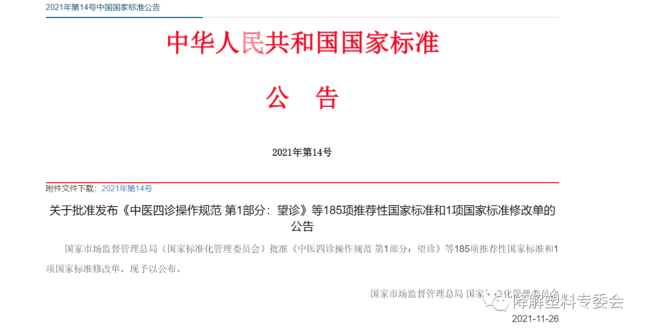 近期,市场监管总局制定发布《生物降解塑料与制品降解性能及标识要求》和《生物降解饮用吸管》两项推荐性国家标准,并将于2022年6月1日起正式实施。