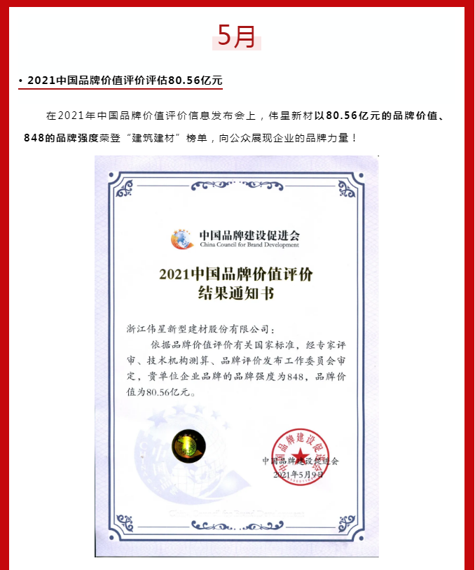 荣誉见证 | 浙江伟星新型建材股份有限公司的2021,踔厉奋发,笃行不怠!