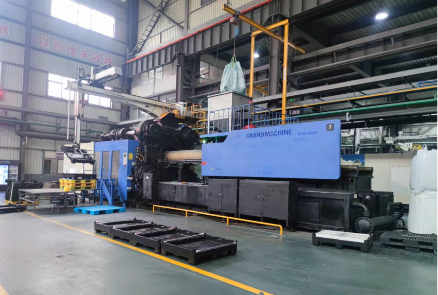 3、在注塑托盘生产设备方面:鑫鼎115台注塑机,4台大型焊接机,中央供料系统,机械手自动化生产等等设备为注塑托盘生产的及时交货保驾护航。