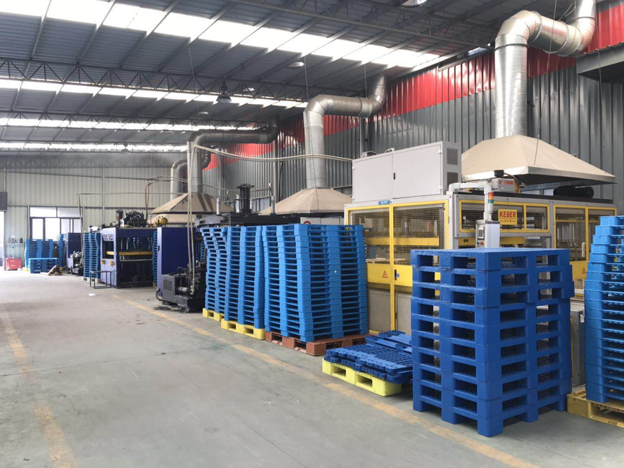 4、在吹塑托盘生产设备方面:鑫鼎目前有大中小共8台吹塑机,最大一台可吹制50公斤左右的吹塑托盘,基本可以满足国内吹塑托盘的生产订单的各类要求。