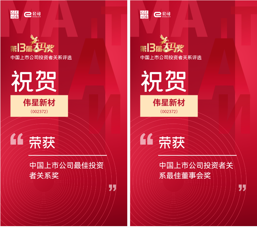 此次再获以上殊荣,也是对公司投资者关系管理工作的褒奖和认可。伴随着中国资本市场深化改革的继续推进,伟星新材将持续完善公司治理,稳健经营,推动公司长期可持续发展,不断创造价值,积极回馈投资者。