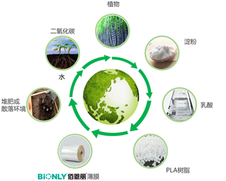 郑伟:BiONLY®佰恩丽®是目前国内唯一一款规模化生产的双向拉伸聚乳酸薄膜,具备生物基和可控降解的特性,其原料PLA来源于植物中提取的淀粉经过微生物发酵聚合而成,产品使用后在工业堆肥条件下最快8周内可以完全降解成水和二氧化碳,从而实现源于自然归于自然的完美循环。