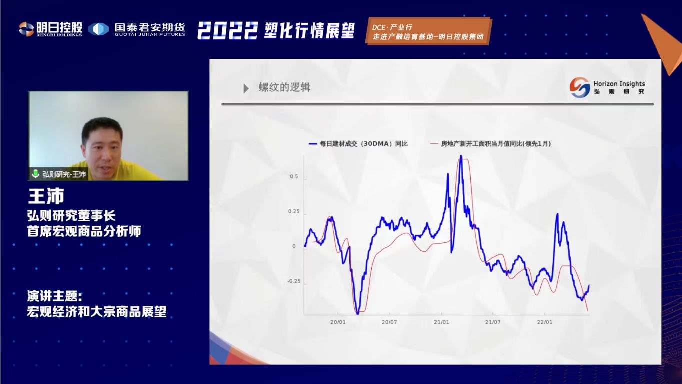 韩新伟首先对参加“云上”直播的各位来宾表示欢迎;对大商所持续推进产融基地建设,为明日控股赋能产业客户提供创新平台表示感谢。他指出,国际上俄乌冲突和经贸制裁,加剧了全球能源供应紧张的局势,塑化产业链面临严峻考验。而国内海外疫情带来的成品出口红利消失,国内疫情冲击影响消费需求走弱,让每个产业人体验到了经济失速。