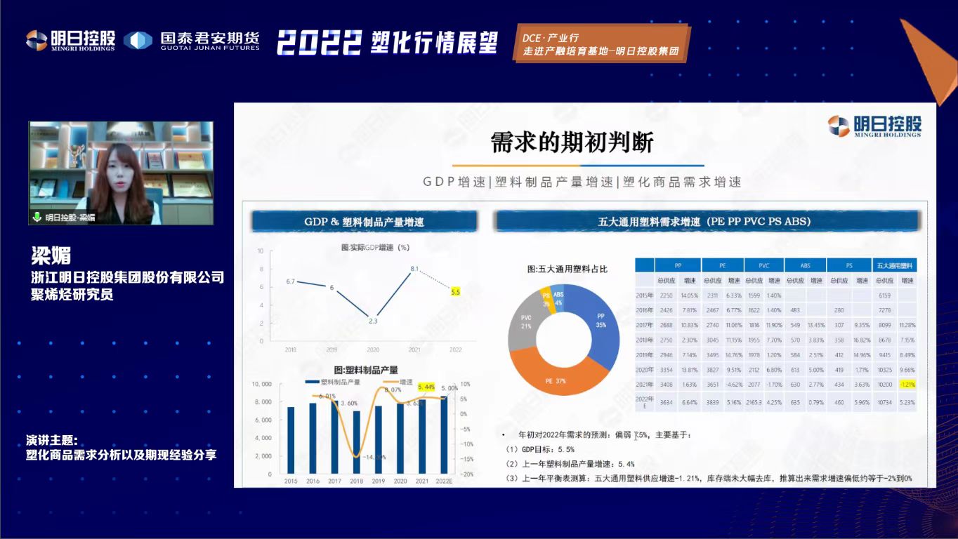 对于塑化商品来说,在宏观周期、行业周期的轮动中,微观的库存周期又将如何摆动,这种库存的轮动和需求优势如何紧密联系在一起,而这又会对产业链参与者的经营模式产生怎样的冲击和影响。带着这些疑问,浙江明日控股集团股份有限公司聚烯烃研究员梁媚站在微观产品库存周期的视角,作了深入解读。
