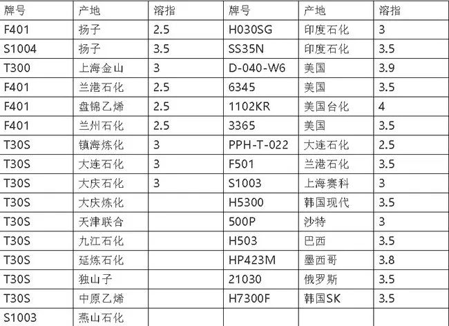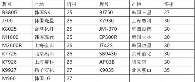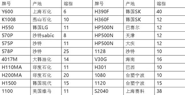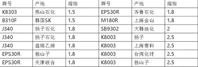 三、高溶指嵌段共丙(溶指为18以上,最通用、用量最大的溶指在25—30之间):