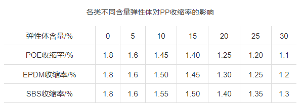 在PP中采用无机填料与弹性体混合加入,收缩率下降效果更好。