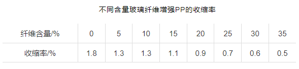 这里所指的纤维包括各类无机纤维和有机纤维。以短玻璃纤维增强为例,在PP树脂中加入不同含量的玻璃纤维都可以大幅度降低其成型收缩率。