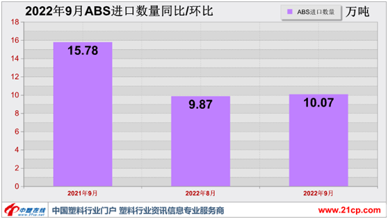 2022年9月中国进口ABS树脂10.07万吨,进口均价1644.96美元/吨。九月进口ABS受市场气氛好转加持,较上月继续小幅增量,但总体进口数据仍处偏低水平。下面中塑小编对9月进口数据做如下简析。