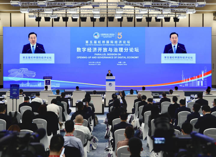 第五届虹桥国际经济论坛“数字经济开放与治理”分论坛上,省长王浩欢迎广大企业家来浙投资兴业