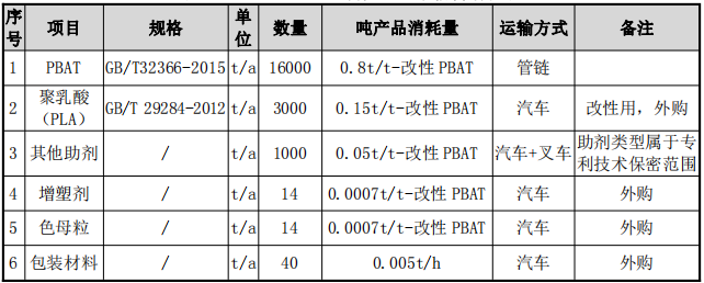 建设规模:产能为6万吨/年 PBAT, 装置按 1 条 6 万吨/年产能设计,同时产出 0.66 万吨/年副产品四氢呋喃(以下简 称 THF);1 条年产2万吨/年改性 PBAT 装置。
