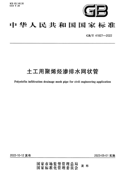 近日,由大连海川科技有限公司牵头,中国土工合成材料工程协会理事单位大连塑料研究所有限公司等13家单位联合起草的国家标准《土工用聚烯烃渗排水网状管》由中国标准出版社正式出版发行。标准号为GB/T 41827-2022,将于2023年5月1日起实施。