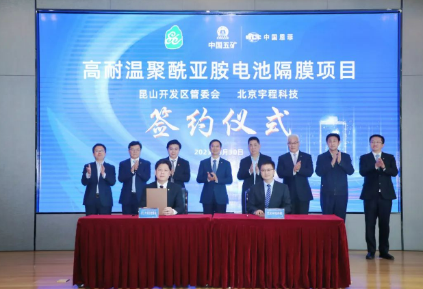 3月30日,江苏昆山开发区与北京宇程科技有限公司在北京签约,总投资50亿元的高耐温聚酰亚胺电池隔膜项目落户昆山,将填补我国在聚酰亚胺领域高端产品和自主技术的空白。该项目规划建设百亿平方米高耐温聚酰亚胺隔膜产能,实现约20%市场占有率,计划成为千亿市值的高性能隔膜龙头企业。北京宇程科技有限公司董事长齐胜利、昆山市委书记周伟等出席活动。