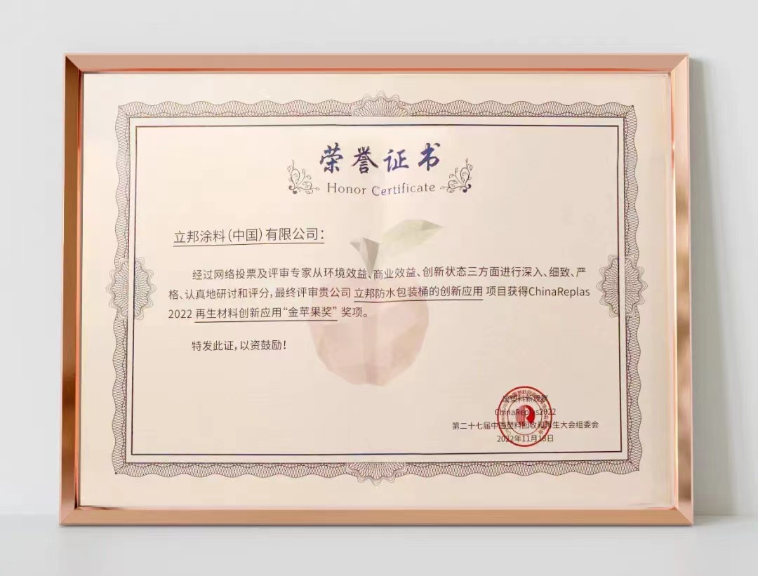 立邦以绿色环保型塑料包装荣获ChinaReplas2022再生材料创新应用“金苹果”奖