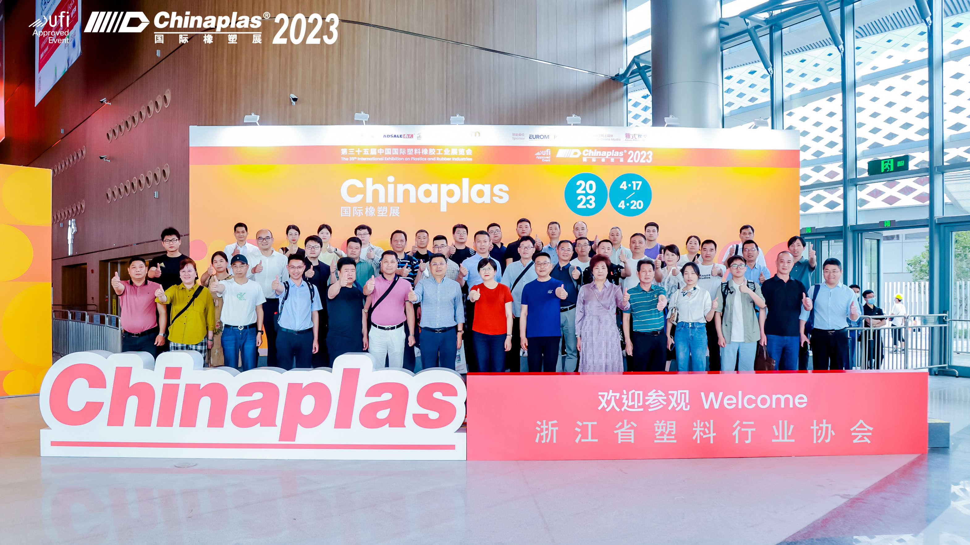 4月17-20日,Chinaplas 2023国际橡塑展在深圳国际会展中心隆重举行,浙江省塑料行业协会组织省内近300余名塑料行业企业的负责人及相关专业人员参观了本届展览会。协会名誉会长兼浙江明日控股集团股份有限公司董事长韩新伟、协会副会长兼秘书长汪建萍、常务副秘书长郭利强一行参观了展会,实地考察了浙江海正、宁波家联、普利特、华峰、中广核俊尔、华瑞达包装、万凯新材料、温州知良、杭州捷尔思等会员单位展位,并与各企业负责人进行了深入交流。