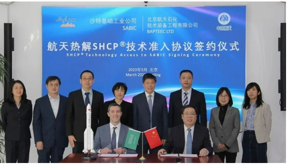 近日,中国航天科技集团有限公司下属第六研究院北京航天动力研究所(BAPI)全资子公司北京航天石化技术装备工程有限公司(以下简称北京航天石化)与全球领先的化工行业领导者沙特基础工业公司(SABIC)在北京举行签约仪式,签署沙特基础工业公司获得北京航天石化航天热解SHCP®技术的准入许可协议。