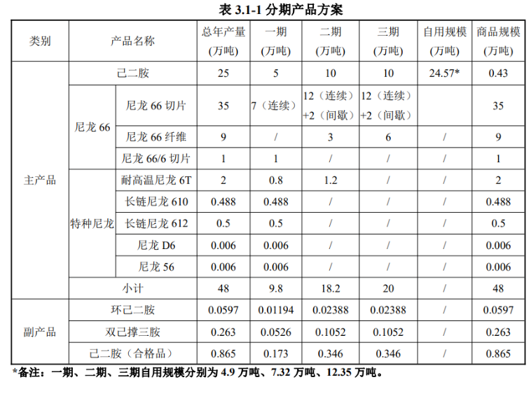 建设内容:本项目新征地557亩,先期征地400亩,新建厂房、仓库、办公楼等建筑约316190平方米,建成后可实现年产25万吨己二胺及48万吨高端尼龙新材料,产出副产品597t/a环己二胺、2630t/a双己撑三胺和副产8650t/a己二胺(合格品)。