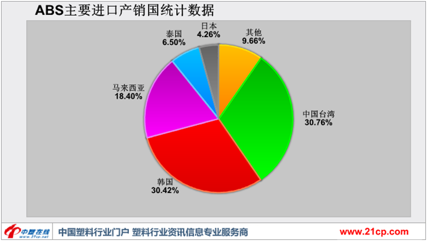 从产销国统计数据可以看出4月份从中国台湾和韩国的进口量占比未超七成,其中从中国台湾进口2.46万吨,约占30.76%;从韩国进口2.43万吨,约占30.42%;从马来西亚进口1.47万吨,约占18.40%。