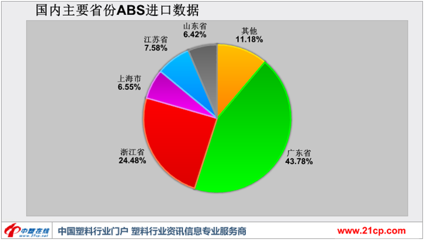 从各省方面的进口数据可以看出华南、华东地区进口数量比例占据一二位格局未变。4月占到总进口量超90%。其中广东省进口3.50万吨,约占43.78%;江苏省进口0.61万吨,约占7.58%;浙江省进口1.96万吨,约占24.48%;上海市进口0.52万吨,约占6.55%;山东省进口0.51万吨,约占6.42%。