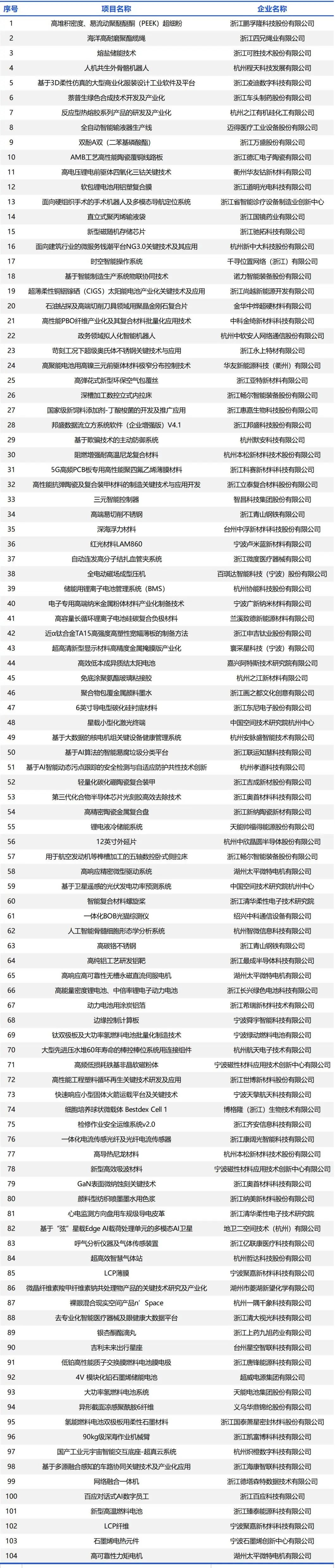 为深入实施创新驱动发展战略,提高技术创新成果转化和产业化水平,根据《浙江省经济和信息化厅关于征集浙江省先进(未来)技术创新成果的通知》,经申报推荐、专家评审、网上公示等环节,共认定2023年浙江省先进(未来)技术创新成果104项,现予以公布。