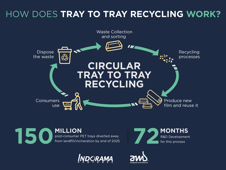 AMB首席采购官Paolo Cescutti解释说:“消费者关注可持续性和食品安全,并希望他们使用的食品托盘是可回收的。通过与Indorama Ventures的合作,我们使回收材料成为可能,这意味着我们可以将更多的塑料废弃物转化为安全的食品级包装。
