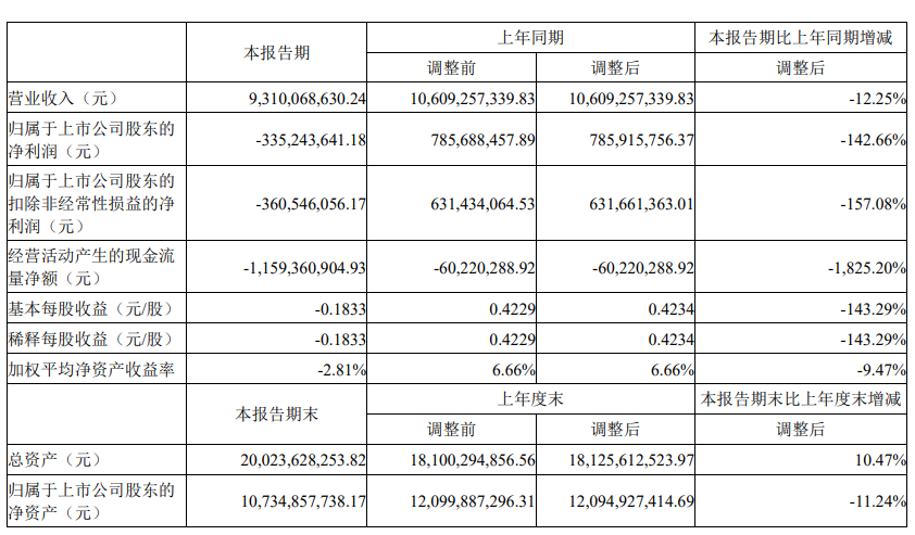 8月26日,中粮科技披露2023年半年度报告,营业总收入93.10亿元,同比下降12.25%;归母净利润亏损3.35亿元,上年同期盈利7.86亿元;扣非净利润亏损3.61亿元,上年同期盈利6.32亿元。