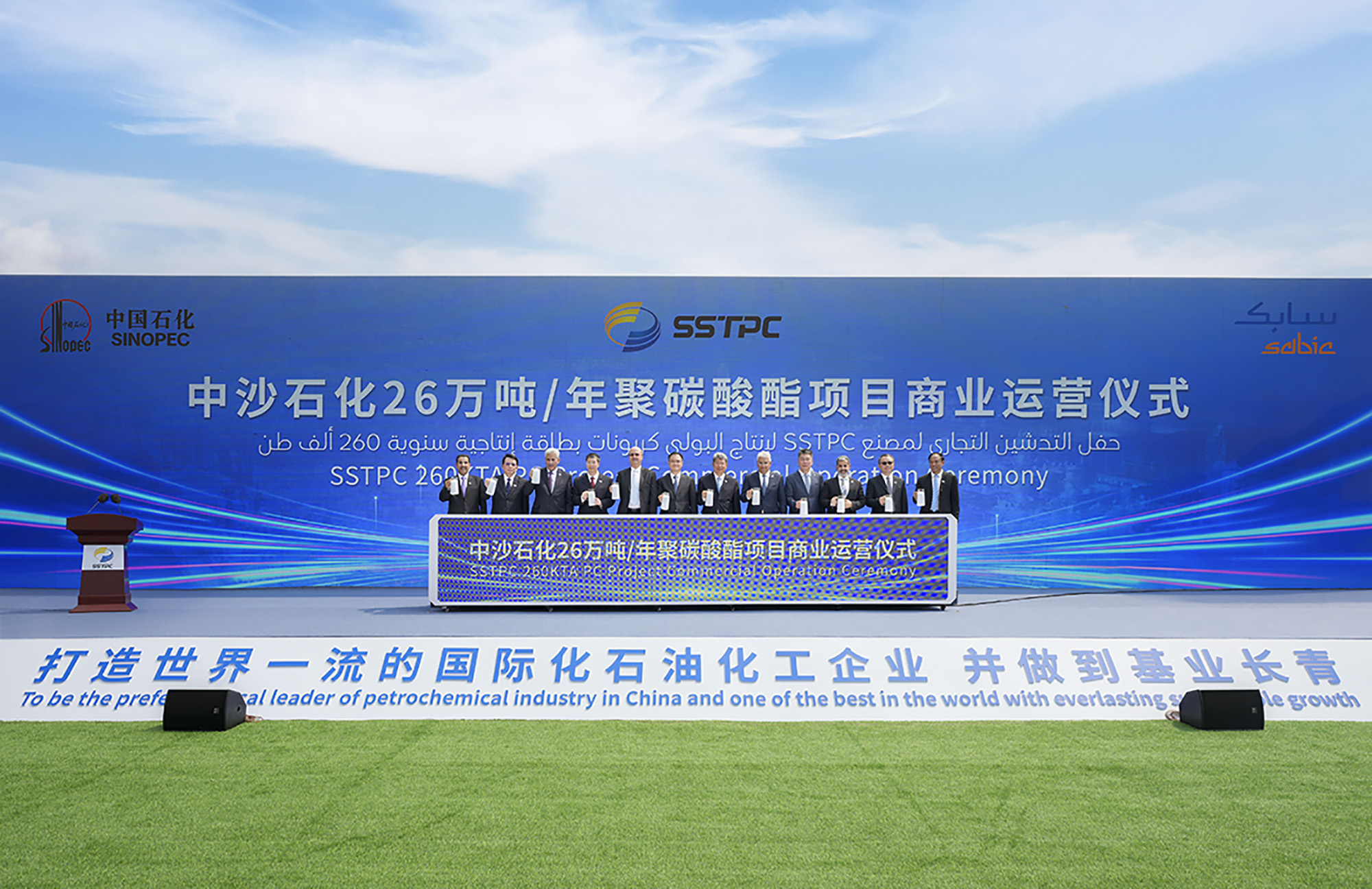近日,沙特基础工业公司(SABIC)与中国石油化工集团公司(简称中国石化)共同宣布,旗下位于天津的对等持股合资公司——中沙(天津)石化有限公司(简称中沙石化)新建的聚碳酸酯(PC)工厂正式投入商业运营。SABIC董事长哈立德·哈希姆·阿尔达巴格以及中国石化董事长马永生参与了此次仪式。