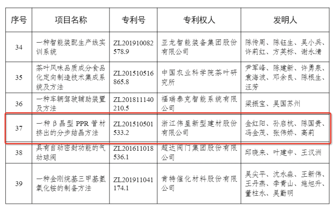 近日,浙江伟星新型建材股份有限公司(以下简称伟星新材)斩获第一届浙江省知识产权奖——发明专利二等奖,是此次临海市获得的最高级别奖项。