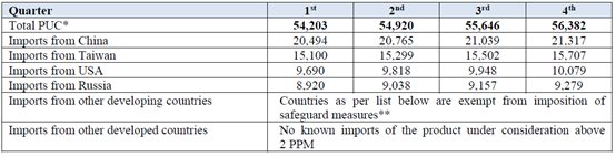 对自根据FTDR发出通知之日起一年内进口标的货物的配额表