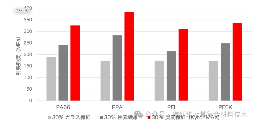 KyronMAX 采用特殊的复合技术和碳纤维加工技术,使其比传统的注塑塑料具有更高强度、更高刚度。作为一项创新技术,它实现了注塑用塑料材料的最高强度水平,最大拉伸强度为383 MPa。具体来说,其拉伸强度比通用玻璃纤维增强树脂高70%以上,比通用碳纤维增强树脂高30%以上。