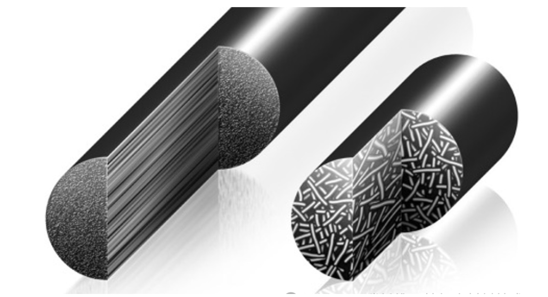 KyronMAX 是一种以随机方向排列的短碳纤维增强树脂复合材料。由于它使用了短碳纤维,因此可以渗透到缝隙中。此外,它可以应用于极其复杂的形状和厚度在2mm以下的结构件,这是使用长碳纤维增强树脂难以实现的。根据公司的经验,使用该款材料也有以0.3mm的厚度注塑成型的成功案例。此外,通过使用特殊的粘合剂来提高基础树脂和碳纤维之间的粘合力,能够注射成型具有高韧性和高强度的零件。