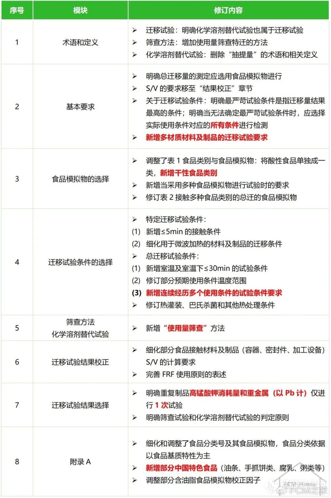 主要变化:①检测项目新增芳香族伯胺迁移、N-亚硝胺和N-亚硝胺可生成物。