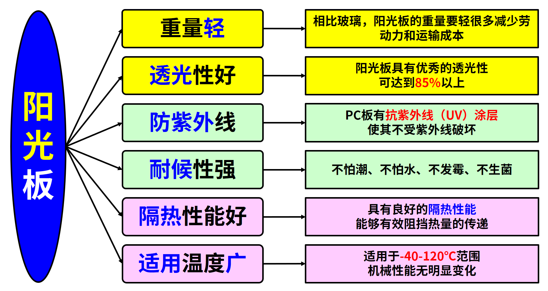 其中阳光板是空心的,分为双层、四层和蜂窝阳光板。