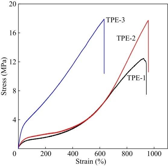 图2 TPE-1、TPE-2、TPE-3的拉伸曲线