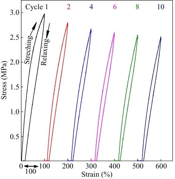 图3 以50 mm·min-1的速率拉伸TPE-6至100%应变进行循环拉伸试验